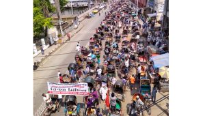বরিশাল প্রতিনিধি:: লকডাউনে শ্রমজীবী খেটে খাওয়া মানুষদের জন্য ১ মাসের খাদ্য ও নগদ ৫০০০ টাকা অর্থ বরাদ্দ, শ্রমিক নির্যাতন-হয়রানী বন্ধ ও বিনামূল্যে করোনা পরীক্ষা, চিকিৎসা ও ভ্যাক্সিনের দাবিতে আজ শনিবার বরিশালে পাঁচ শতাধিক শ্রমিক লাল পতাকা এবং বিভিন্ন দাবি সম্বলিত ফেস্টুন নিয়ে ব্যতিক্রমী ‘রিক্সা মিছিলে’র আয়োজন করে বাংলাদেশের সমাজতান্ত্রিক দল-বাসদ বরিশাল জেলা শাখা।