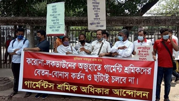 নেতৃবৃন্দ আরও বলেন, “বিজিএমইএ, বিকেএমইএ’সহ মালিকদের কয়েকটি সংগঠন এবছরও শ্রমিকদের বেতন -বোনাস পরিশোধের অজুহাত দেখিয়ে সরকারের কাছে বড় অঙ্কের প্রণোদনা প্যাকেজের প্রস্তাব করেছে। কিন্তু গত বছরের নির্মম অভিজ্ঞতা থেকে এটা বুঝতে পারি, মালিকরা মূলত ব্যবসায় দুরবস্থার কথা বলে বেতন-বোনাস থেকে শ্রমিকদের বঞ্চিত করার এবং সরকারের দেওয়া প্রণোদনার টাকা শ্রমিকদের না দিয়ে লুটপাটের পাঁয়তারা করছে। তাই মালিকদের এই অপতৎপরতা বন্ধ করতে হবে। অবিলম্বে শ্রমিকদের বেতন-বোনাস পরিশোধে মালিকদেরকে নির্দেশ দেওয়ার জন্য আমরা সরকারের কাছে আহ্বান জানাই।”