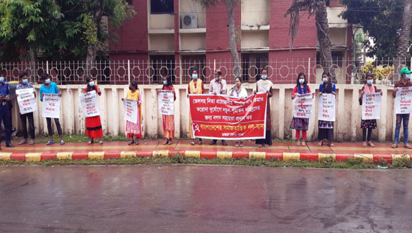 অধিকার ডেস্ক:: গণপরিবহন বন্ধ রেখে কারখানা খোলার ঘোষণা দিয়ে শ্রমিকদের নিরাপত্তা ঝুঁকি, হয়রানি ও দুর্ভোগের প্রতিবাদে বিক্ষোভ সমাবেশ করেছে বাংলাদেশের সমাজতান্ত্রিক দল বাসদ বরিশাল জেলা শাখা।