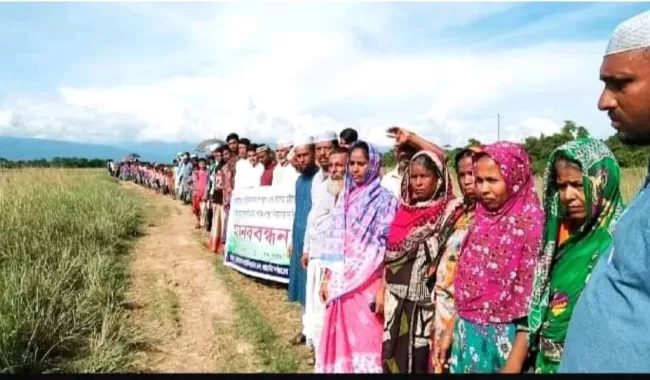 মানববন্ধনে উপস্থিত ছিলেন, মো. আব্দুর রশিদ, মদরিছ আলী, আব্দুর রাজ্জাক, আব্দুল হক, আয়েশা বেগম, আরমিছ আলী, আকলুছ মিয়া, এখলাছ মিয়া, মাওলানা নুর উদ্দিন, মাওলানা আবুল কালাম, নুর আহমদ, আব্দুল হামিদ, ছমক আলী, আম্বিয়া বেগম, নুরুন নেছা, ফয়জুল মিয়া, আলমগীর, আকবর আলী, তেরা মিয়া, ছত্তার মিয়া, ডালিম, শুকুর মিয়া, মো. ছালেক মিয়া, এমরান মিয়া, ছাদিক মিয়া, সজিব, রজাক আলী,আংগুর মিয়া, আব্দুল ছালাম, সমুজ আলী, আলতাই মিয়া প্রমূখ।