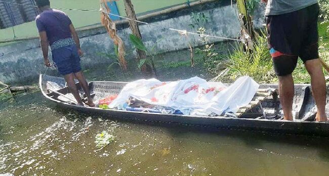 শুক্রবার (২২ অক্টোবর) ভোররাতে বার্ধক্যজনিত রোগে মারা যান হাটগাছা গ্রামের কালীপদ মন্ডল (৯২)। বসত-ঘরসহ চারপাশে পানি থাকায় মৃতদেহ রাখতে হয়েছে নৌকায়। আর সেই নৌকায় রেখে করতে হয়েছে সৎকার। মৃত কালীপদ মন্ডল হাটগাছা মাধ্যমিক বিদ্যালয়ের মানেজিং কমিটির সভাপতি ও সাবেক ইউপি সদস্য মনোজ কান্তি মন্ডলের বাবা।