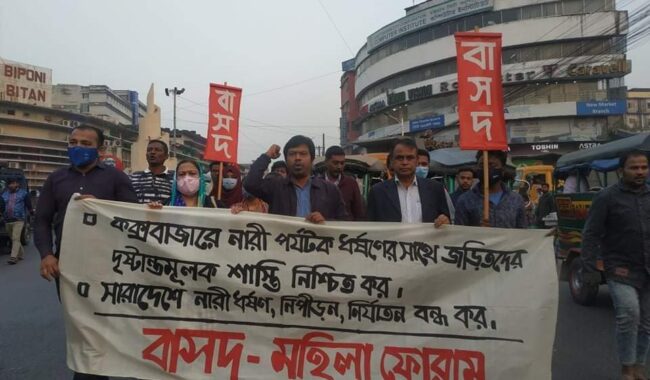 চট্টগ্রাম প্রতিনিধি :: কক্সবাজারে পর্যটক নারীকে ধর্ষণের ঘটনার প্রতিবাদে ও ধর্ষকদের বিচারের দাবিতে বাংলাদেশের সমাজতান্ত্রিক দল বাসদ ও সমাজতান্ত্রিক মহিলা ফোরাম চট্টগ্রাম জেলার উদ্যোগে বিক্ষোভ সমাবেশ অনুষ্ঠিত হয় আজ বিকাল ৪টায় নগরীর নিউমার্কেট মোড়ে।