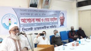 অদ্য বেলা ১২.৩০ ঘটিকায় সিলেট ডায়াবেটিক সমিতির সভাকক্ষে সিলেট ডায়াবেটিক এন্ড জেনারেল হাসপাতালের আবাসিক মেডিকেল অফিসার ডাঃ ললিত মোহন নাথ এর সঞ্চালনায় আলোচনা সভা ও দোয়া মাহফিলের শুরুতে পবিত্র কোরআন থেকে তেলাওয়াত করেন সিলেট কালেক্টরেট মসজিদের পেশ ইমাম হাফিজ মাওলানা মোঃ শাহ আলম।