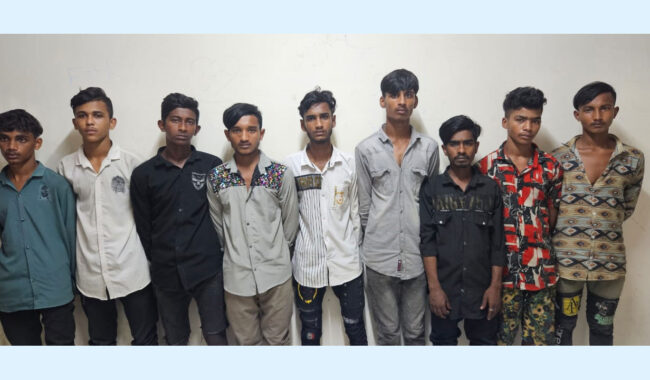 অধিকার ডেস্কঃ গ্রেপ্তাররা হলেন— মো. আকাশ (১৯), মো. নয়ন (২০), মো. সজল ইসলাম (১৯), মো. আবু কালাম (২১), মো. আরিফ (১৯), মো. সজীব (১৯), মো. কবির (২৩), মো. নাসির (১৯) ও মো. সুজন (২০)।