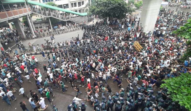 পুলিশের ব্যারিকেড ভেঙে শাহবাগ মোড়ে আন্দোলনকারীরা