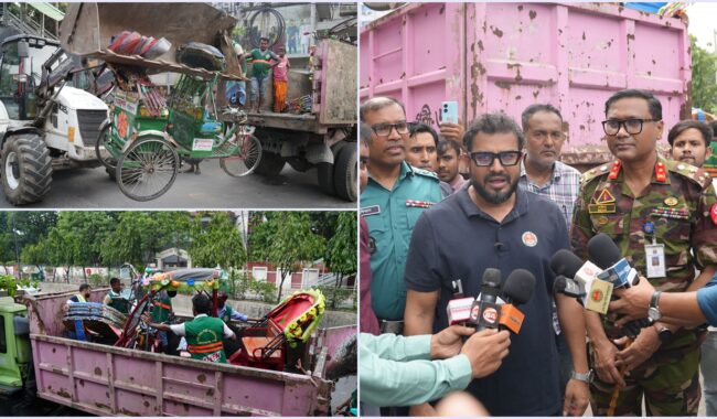 ঢাকা মেট্রোপলিটন পুলিশ ও ঢাকা উত্তর সিটি কর্পোরেশনের যৌথভাবে পরিচালিত আজকের অভিযানে মূলসড়কে চলাচলরত আনুমানিক ৩০টি ব্যাটারি চালিত রিকশা জব্দ করা হয়।