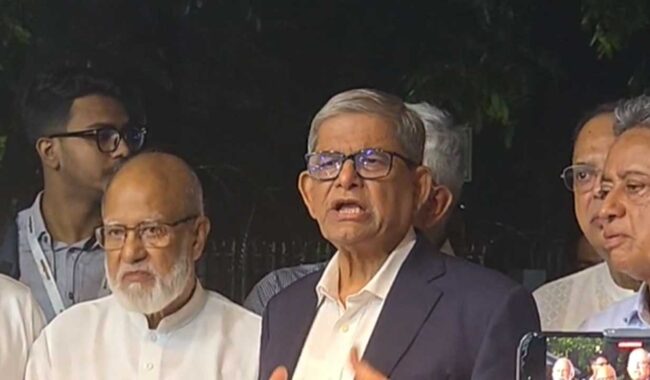 লন্ডনে একটি দলের প্রধানের সঙ্গে বৈঠকে নির্বাচনের সময় নির্ধারণ প্রমাণ করে সরকার একটি দলের উপর দুর্বল- জামায়াতের এমন অভিযোগ প্রসঙ্গে মির্জা ফখরুল বলেন, লন্ডনে প্রধান উপদেষ্টা একটি বৃহত্তর রাজনৈতিক দল বিএনপির প্রধানের সঙ্গে বৈঠক করেছেন- করতেই পারেন। তার এখতিয়ার আছে যেকোনো দলের প্রধানের সঙ্গে বসার। এটা একান্ত তার ব্যক্তিগত বিষয়।