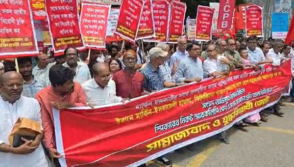 অধিকার ডেস্ক: সাম্রাজ্যবাদ ও যুদ্ধবিরোধী জোট-এর পক্ষ থেকে মার্কিন যুক্তরাষ্ট্রের সাথে অন্তর্বর্তী সরকার কর্তৃক সম্পাদিত অসম বাণিজ্য চুক্তিসহ জাতীয় স্বার্থ বিরোধী সকল চুক্তি বাতিল, চট্টগ্রাম বন্দরের নিউমুরিং কন্টেইনার টার্মিনাল বিদেশি কোম্পানি ডিপি ওয়ার্ল্ডের কাছে ইজারা দেওয়ার পাঁয়তারা বন্ধ এবং ইরানে মার্কিন-ইসরাইলী হামলা, গাজায় জায়নবাদী গণহত্যাসহ দেশে দেশে সাম্রাজ্যবাদী আগ্রাসন-যুদ্ধ বন্ধের দাবিতে বিক্ষোভ, স্পিকারের কাছে স্মারকলিপি পেশ কর্মসূচি পালিত হয়েছে।