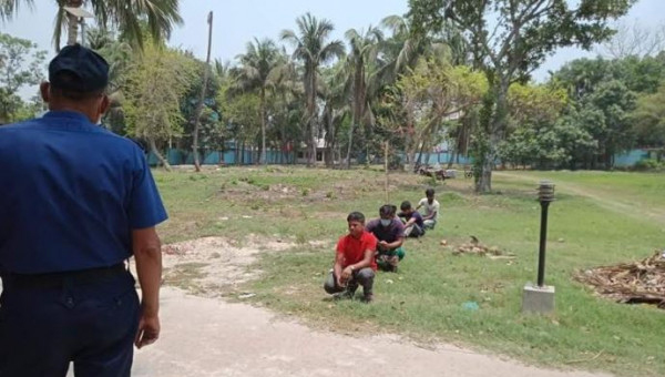 স্বাস্থ্যবিধি না মানায় প্রখর রোদে বসিয়ে শাস্তি