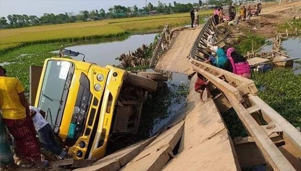 বিকল্প সেতুটিও ভেঙে গেল, ঝুঁকি নিয়ে রাস্তা পারাপার